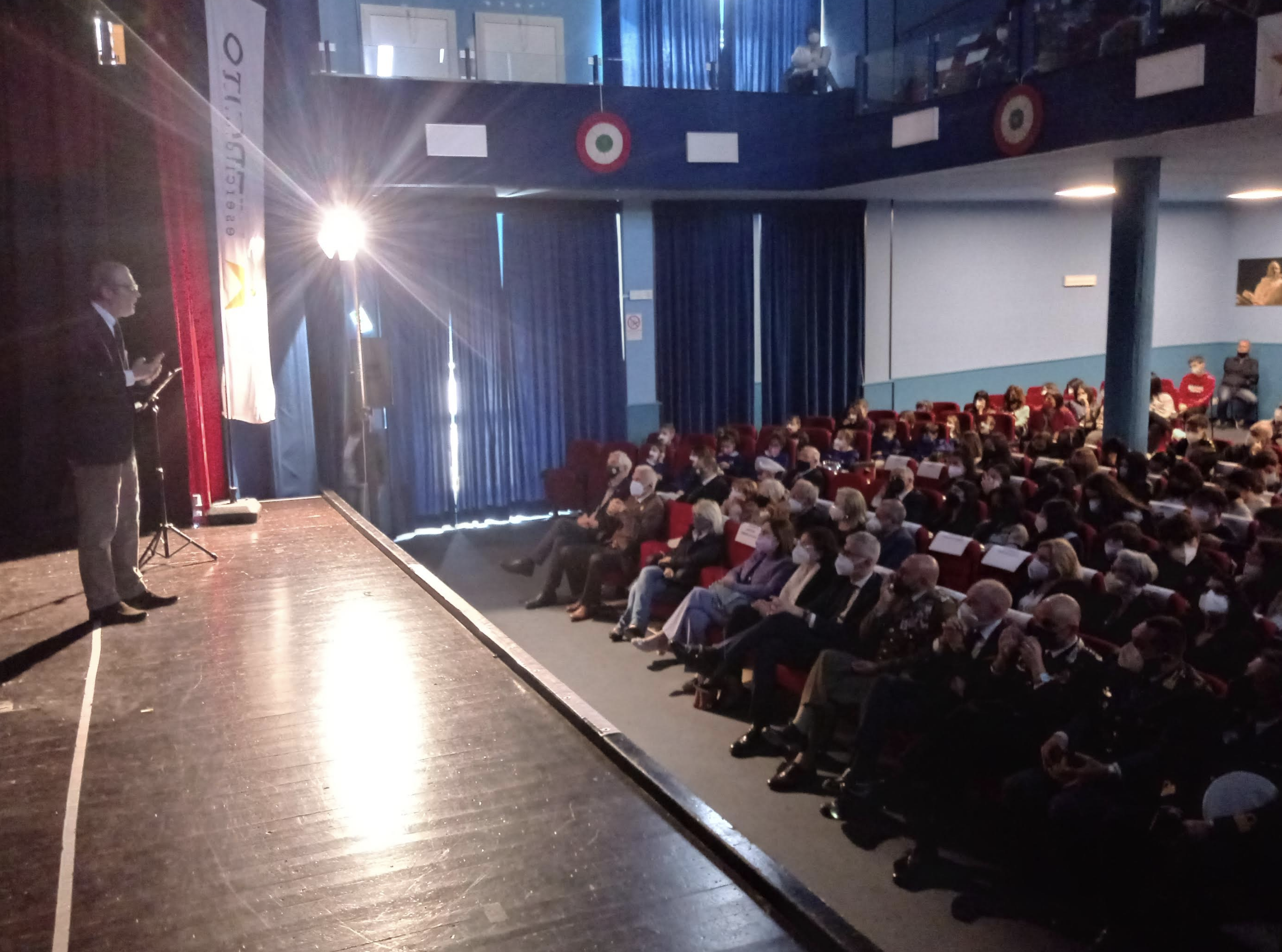 L’iniziativa, organizzata dal Comando Militare Esercito “Sicilia” con la collaborazione del Comune di Ragusa e dell’Ufficio Scolastico Provinciale, è stata proposta per gli studenti della città e della provincia che hanno gremito la struttura teatrale, presenti le autorità cittadine ed i massimi rappresentanti delle Forze di polizia del territorio.
