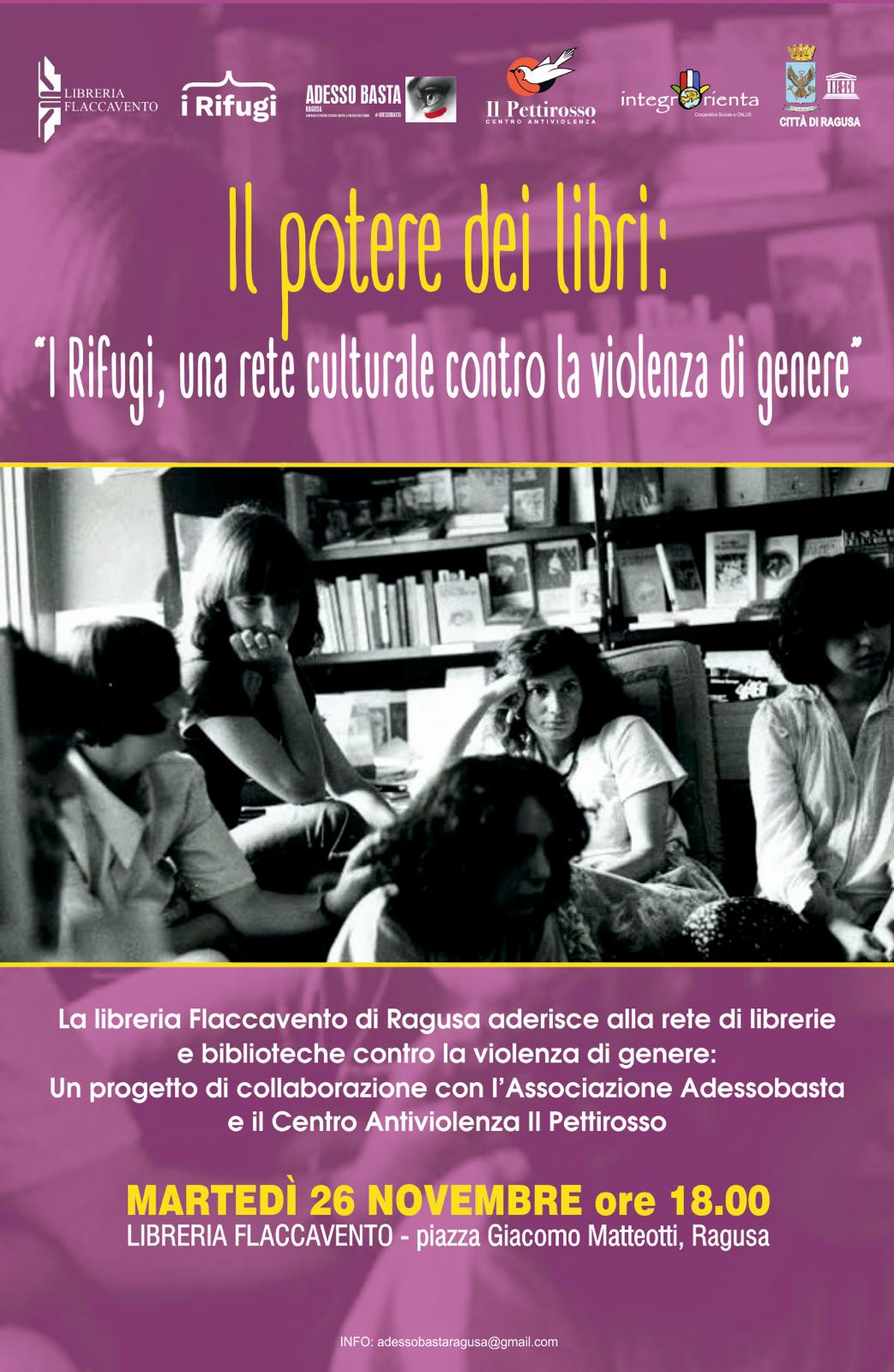 “I Rifugi’: una rete culturale per contrastare la violenza di genere Il potere dei libri. Evento alla Flaccavento