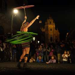 Brio e dinamicità, virtuosismo e spontaneità: è il mix di energia pura che propone invece Juriy Longhi con equlibrismi e giocoleria ai piedi del Duomo di San Giorgio. Tra le attrazioni da non perdere c’è sicuramente il “focus” che Ibla Buskers ha dedicato alle discipline aeree ai giardini iblei dove troviamo, al trapezio, una bambolina e il suo soldatino che cerca disperatamente di salvarla. Sono le emozioni che ci regalano i Red One Duo – Compagnia ROD mentre Chiara Serges, con i suoi movimenti, continua l’oscillazione in volo prima di ballare in aria un tango con Dory/Valeria Cultrera. Divertentissimi gli Appiccicaticci che con il loro teatro d’improvvisazione prendono spunti dal pubblico e creano storie strapparisate. Un mondo strambo di Franxi Natra Clowna è un girl power tra tecnica e comicità e ammalia grandi e piccini così come fanno tutti gli artisti presenti in questa edizione come sempre organizzata dall’associazione Edrisi. Da segnalare la suadente musica dei C.a.f.è che conduce il pubblico in un viaggio tra le note, andando oltreoceano, cantando sulla pampa e ballando a Cuba. Ed ancora il canto sublime di Cico Messina e la sua serenata all’incontrario.