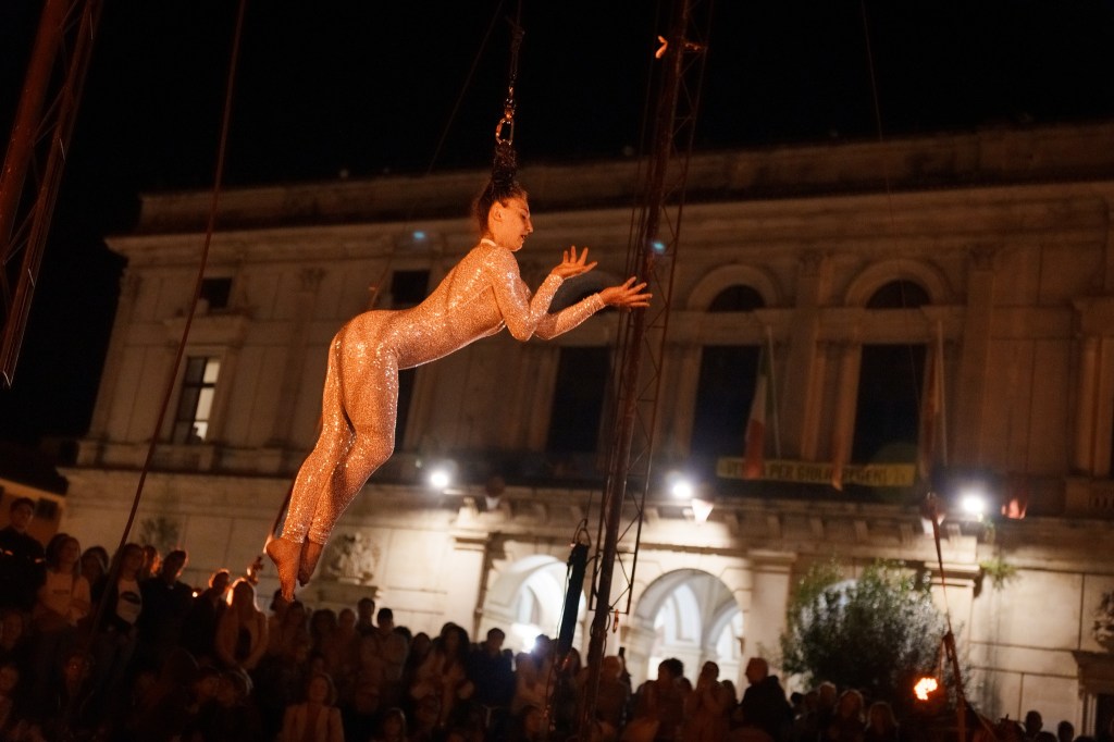 Ogni edizione di Ibla Buskers ha un focus speciale, e quest’anno il festival guarda in alto, con il progetto “Volante”, dedicato alle arti aeree. Tra i protagonisti di questa spettacolare sezione troviamo Lorena Menade con la corda volante, Paola Caruso con il trapezio ballant e Nur Cimenci che incanta il pubblico con la sua sospensione capillare. Questi spettacoli sfidano la gravità e incantano il pubblico, evocando la storia del trapezista Henry Blondeau, che nel 1890 divenne leggenda volando sulla sua mongolfiera sopra Ragusa durante la festa di San Giovanni.