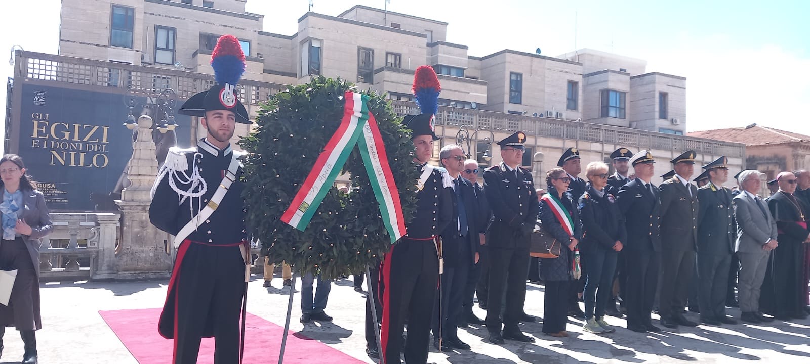 A Scicli, la cerimonia ha preso il via alle 10:15 in Piazza Municipio. Dopo la messa in onore dei caduti nella chiesa di San Giovanni Evangelista, il corteo ha sfilato lungo via Mormina Penna fino a largo Gramsci, dove è stata deposta una corona alla stele dell’Unità d’Italia e della Resistenza. La manifestazione si è poi spostata presso il Monumento ai Caduti per un’ulteriore deposizione. Anche qui, in segno di rispetto per la scomparsa del Papa, le celebrazioni si sono svolte in forma sobria. Partecipata cerimonia anche a Vittoria.