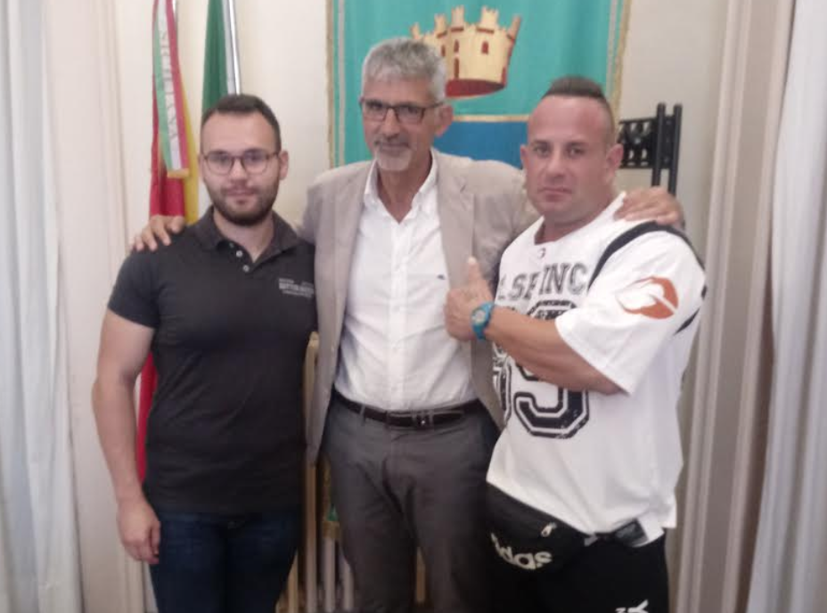 Nel corso di una breve cerimonia svoltasi stamane presso la sala Giunta, il sindaco Peppe Cassì ha ricevuto e premiato l’atleta ragusano Luca Farinella, classe 1982, Campione italiano di bodybuilding, categoria fino a 90 kg. L’ospite, accompagnato dalla moglie Tiziana Catania e dal coach atletico Raffaele Incardona, è stato presentato dal consigliere comunale Daniele Vitale che aveva proposto al primo cittadino di premiare Farinella per il brillante risultato raggiunto in occasione del Campionato italiano della speciale disciplina tenutosi a Napoli lo scorso mese di maggio. Nel corso della cerimonia il sindaco Cassì si è complimentato con Luca Farinella per il titolo conseguito che – ha affermato il primo cittadino – richiede non pochi sacrifici e tanta passione per le diverse ore settimanali di costante allenamento da fare in palestra oltre che per le particolari abitudini alimentari a cui deve sottostare il cultore di bodybuilding per favorire l’aumento della massa muscolare. Luca Farinella ha ringraziato il sindaco per averlo ricevuto a Palazzo di Città e per il dono di una pubblicazione su Ragusa. L’atleta ha anche, sia pure brevemente, raccontato la sua “storia sportiva” che è iniziata nel 2005 in una palestra ragusana. “La grande costanza e determinazione negli allenamenti nel corso degli anni – ha detto Farinella – sono stati seguiti dal mio coach atletico dott. Raffaele Incardona che ha predisposto per me apposite tabelle dietetiche al fine di bilanciare l’;assunzione di carboidrati, proteine e grassi. A fine incontro Farinella ha volto regalare al sindaco Cassì di una maglietta sportiva e due quadretti con foto che lo ritraggono nel corso delle sue performance nelle gare di bodybuilding.