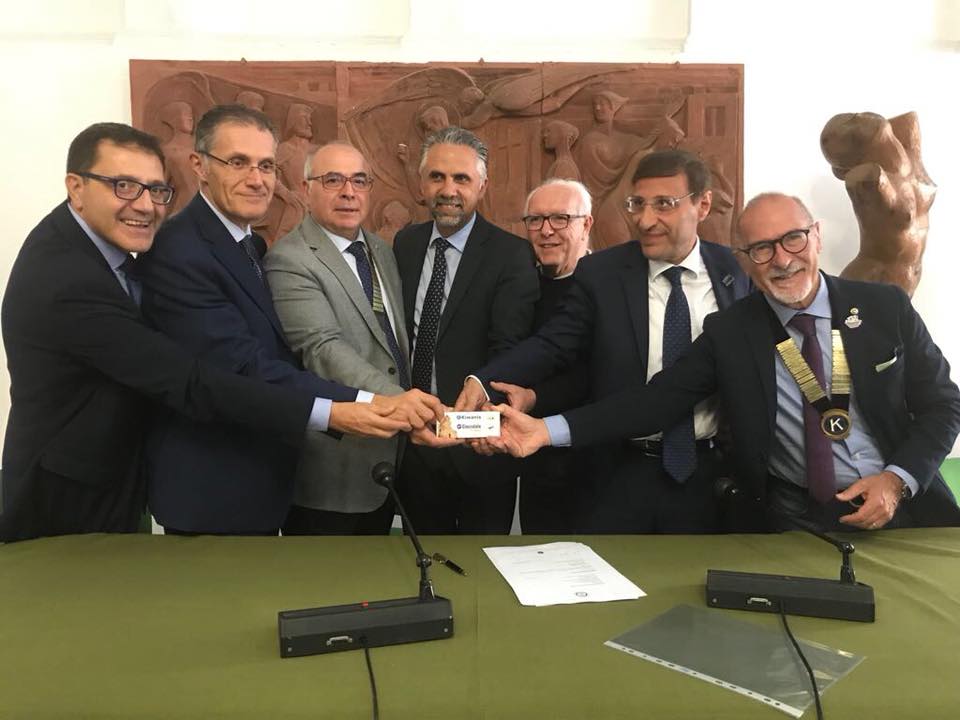 Ufficializzata l’iniziativa di partnership tra il Kiwanis International Distretto Italia- San Marino, il Comune di Modica e il Consorzio del Cioccolato di Modica per la promozione del Progetto *“Il Cioccolato di Modica per HAPPY CHILD*”, mirato alla produzione e alla vendita di barrette di Cioccolato di Modica con il bollino Kiwanis International, *Progetto Happy Child. All’incontro hanno presenziato *il Sindaco Ignazio Abbate del Comune di Modica; il Direttore del Consorzio Cioccolato di Modica Nino Scivoletto; il Governatore Kiwanis International Distretto Italia – San Marino, Dott. Giuseppe Cristaldi; il Past Luogotenente Governatore Kiwanis International Divisione Sicilia 3 Sud-Est e Chair Distrettuale Happy Child, Ing. Giancarlo Bellina; il Past Governatore Kiwanis Elio Garozzo Chair Focus Bullismo; il Luogotenente Governatore Kiwanis International Divisione Sicilia 3 Sud Est, Dottor. Antonio Davì: il Presidente del Kiwanis Club di Modica Giovanni Occhipinti. È stato l’ing. Giancarlo Bellina a presentare il progetto di Service europeo del Kiwanis, in partnership con Unicef, “Happy Child Bambini Migranti dal primo soccorso, all’accoglienza e all’inclusione”. L’occasione è stata propizia per rilanciare il service Modica Choco for Life: il Sindaco del Comune di Modica Ignazio Abbate e il Direttore del Consorzio del Cioccolato di Modica hanno sposato l’iniziativa *Happy Child* che sarà veicolata con una barretta del mitico cioccolato di Modica che contribuirà così a trasformare l’emergenza bambini migranti in un virtuoso percorso di accoglienza e integrazione. Il prototipo di barretta è stato dal Sindaco donato al Governatore Cristaldi che lo ha autografato e collocato nella galleria degli incarti speciali.