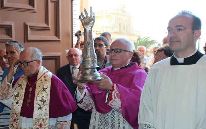 Il braccio reliquiario di San Giovanni Battista in ospedale. Ce lo comunica, un po’ maldestramente, il comitato della festa di Ragusa con il titolo del comunicato che dice “Il braccio reliquiario in ospedale”. Che si sia fatto male proprio in occasione della festa patronale?