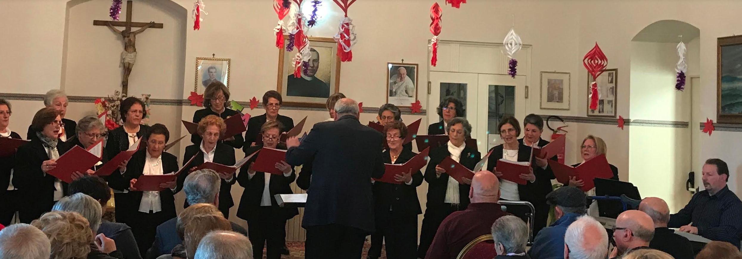 Dopo un breve intervento del presidente Rinaldo Stracquadanio, è stato proiettato un filmato con le immagini del tifone e dei danni da esso arrecati. È seguito quindi una apprezzata ed applaudita esibizione del Coro dell’Unitre accompagnato al piano dal maestro Giorgio Cannizzaro e diretto dal maestro Orazio Baglieri: un momento di piacevole intrattenimento per i tanti ospiti del Boccone del Povero, dei loro parenti presenti e di quanti altri hanno voluto partecipare.
