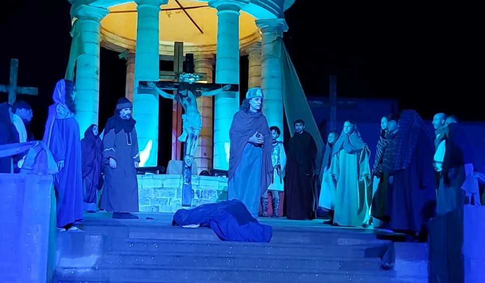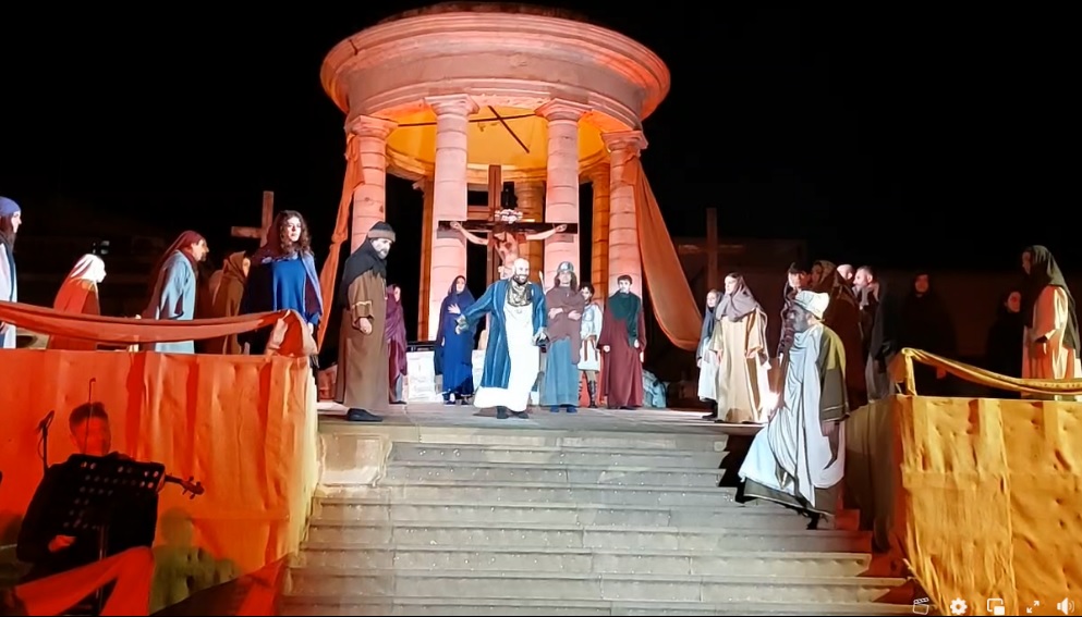 La pioggia ha creato non poche difficoltà al cast degli attori guidato dal regista Andrea Traina che a sera ha offerto la rappresentazione del Dramma Sacro, sul testo del marchese Alfonso Ricca, giunto fino ai nostri giorni.