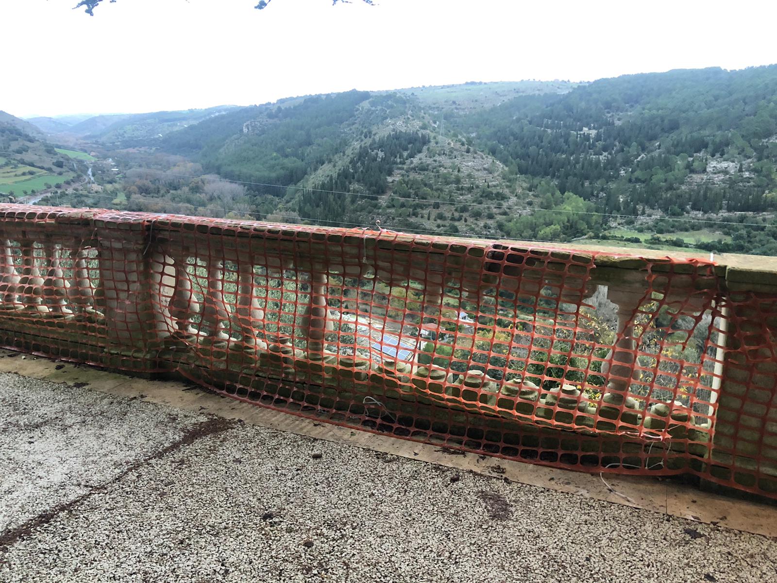 La vasca principale ristrutturata appena tre anni fa è stata lasciata inerme a subire le intemperie oramai da diversi mesi, senza acqua, senza lo zampillo. Uno spettacolo spiacevole. Ci addentriamo nell’ultimo viale, nel cosiddetto punto “belvedere” dove è possibile ammirare il paesaggio che si rivolge all’antica stazione per intenderci. E proprio qui bisogna fare molta attenzione perché buona parte della balaustra risulta pericolante da oramai 6-7 mesi con alcune colonnine cadute nel terreno sottostante dove doveva nascere già da tempo, a bocca dell’amministrazione, il famoso parcheggio multipiano che doveva risolvere tutti i mali di Ibla.