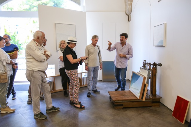 Il viaggio organizzato dal Guggenheim di Venezia, per i propri più affezionati collezionisti e sostenitori di tutto il mondo, ha toccato diversi musei in Sicilia, e ha scelto una sola galleria d’arte dove entrare in contatto con gli artisti e i linguaggi dell’isola, le Quam di Scicli. Un onore per Scicli che, a partire dalle tele di Federico Severino, alcune delle quali partiranno per le collezioni di questi nuovi amici, anche in altri continenti, ha rappresentato l’arte di tutta la Sicilia: con i ricami sulle mappe di Rossana Taormina (Palermo), o le cattedrali materiche di Piero Zuccaro (Catania), o gli studi di sottrazione pittorica di Ettore Pinelli (Modica), oppure le velature di figure in rosso di Simone Geraci (Palermo), i boschi impressionisti di Cetty Previtera (Catania) ed ancora la femminilità in bianco delle opere di Ilde Barone (Modica), e i tuffatori su legno graffiato di Corrado Iozzia (Scicli), e ancora i pastelli di ‘tutto-cielo’ di Giovanni Viola (Modica), o le ‘impronte su trasparenze’ di Francesco Rinzivillo (Pozzallo) ed ancora l’Etna di Valerio Valino (Catania) e per finire nelle costellazioni eteree di Giuseppe Puglisi (Catania).