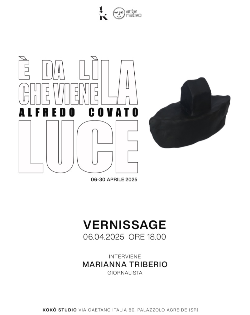 Dal 6 aprile al 30 aprile, la galleria d’arte KOKÓ Studio a Palazzolo Acreide ospita la mostra personale dell’artista Alfredo Covato, intitolata “È da lì che viene la luce”, a cura di Nicolò Paolo Scrofani e Natasha Scrofani. Domenica 6 aprile, alle ore 18:00, si terrà il vernissage della mostra, con la presenza dell’artista in dialogo con la giornalista culturale Marianna Triberio.