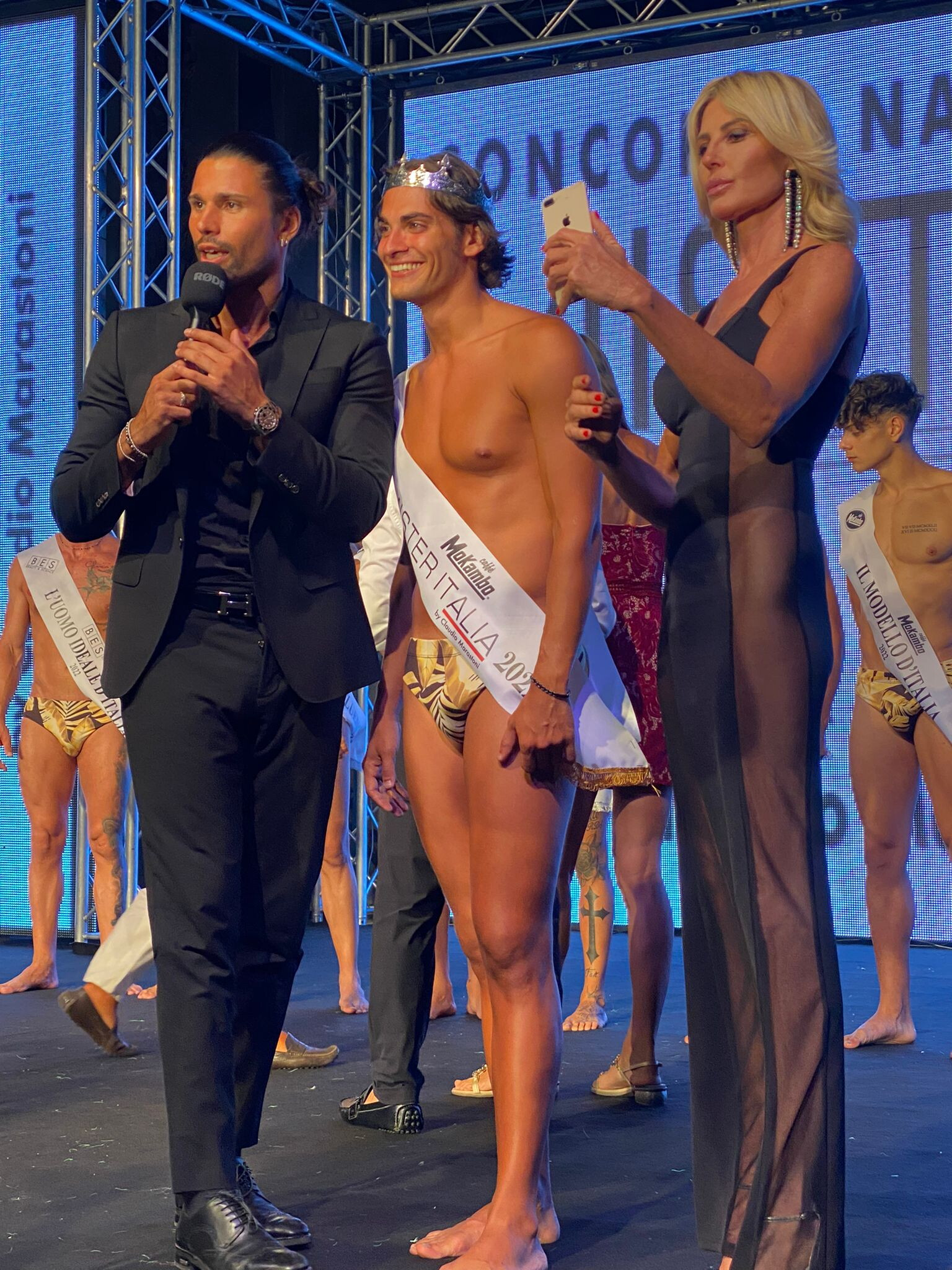 A incoronare il nuovo Mister Italia c'era anche un ex vincitore del concorso, Luca Onestini che, insieme a Jo Squillo, ha condotto la finalissima nazionale. "Ancora devo realizzare quanto accaduto – commenta il neo Mister catanese – La prima dedica va ovviamente alla mia famiglia: qui con me a Pescara c'e' papa' Lanfranco, ma la prima telefonata e' arrivata da casa con mia madre Anna e mia sorella Ginevra in lacrime dalla gioia".