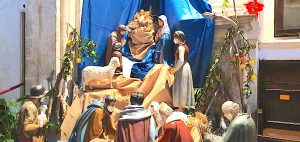 Il presepe con i pastori e i magi con la mascherina. L’allestimento di Arturo Barbante. A Comiso