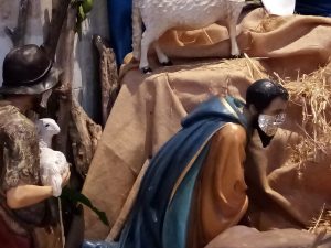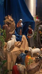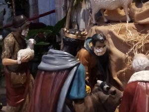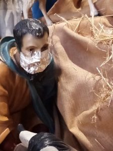 Il presepe con i pastori e i magi con la mascherina. L’allestimento di Arturo Barbante. A Comiso