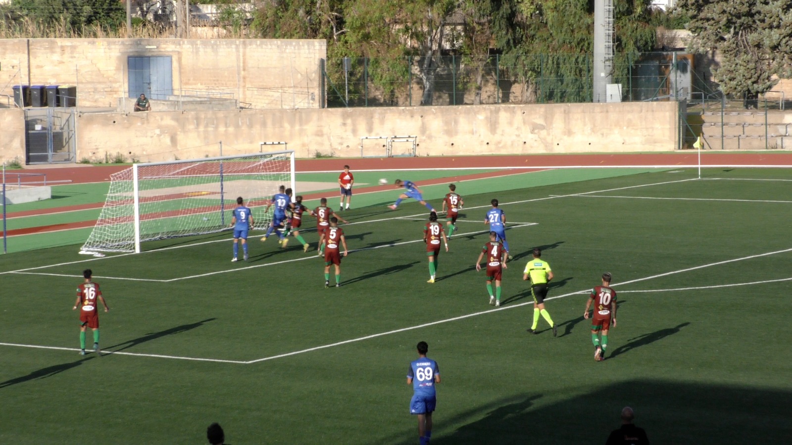Primo pareggio della stagione per l’Asd Ragusa calcio nel campionato di Serie D 2023-2024. Gli azzurri non vanno oltre il pari a reti bianche contro una Sancataldese ben messa in campo che, nel primo tempo al Meno Di Pasquale di Avola, dove gli iblei stanno giocando le proprie partite casalinghe in attesa che sia completata la ristrutturazione dello stadio Aldo Campo di contrada Selvaggio, hanno corso il rischio di capitolare se non fosse stata per la tenacia di Manservigi che ha salvato sulla linea un gol praticamente fatto e per la reattività del portiere Freddi che ha tolto praticamente dal sette la palla calciata su punizione dal verdeamaranto Zerbo. Nella ripresa, complici anche i cambi effettuati da mister Giovanni Ignoffo, Ragusa molto più intraprendente, capace di crescere minuto dopo minuto, sino a quando, nel finale, sfruttando la superiorità numerica dopo l’espulsione del portiere ospite Dolenti, non ha colpito l’incrocio dei pali con una punizione di Oggiano mentre, nel recupero, lo stesso giocatore sardo si è reso protagonista di una schiacciata di testa a colpo sicuro che Maravigna ha bloccato in maniera prodigiosa.