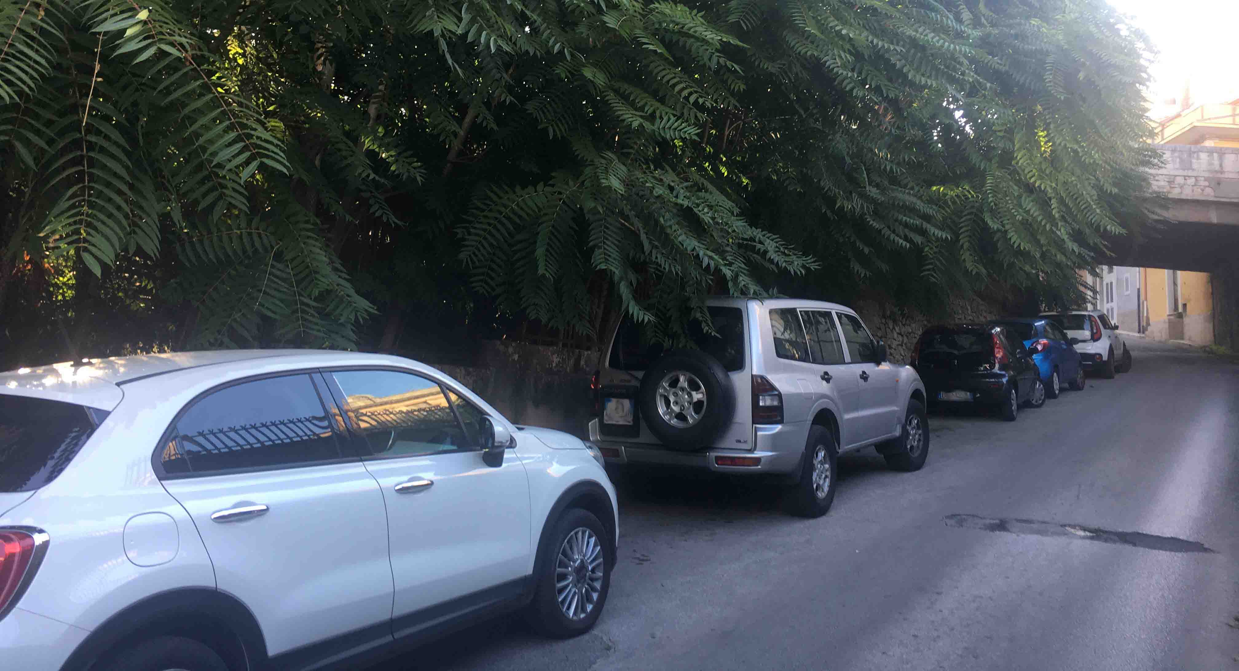 Eccomi a bordo della mia auto che mi avvicino alla mia residenza. Svolto l’angolo e ad attendermi trovo lei: la mia via, bella, curata, pulita. Una strada dove parcheggio e scendo dall’auto senza possedere alcuna particolare abilità ginnica necessaria per scansare gli alberi che, pensate un po’, non sono neanche piantati in apposite aiuole sul marciapiede. No, no! Sono gli alberi della vallata Santa Domenica, così rigogliosi da invadere quasi la carreggiata. Che fortunata che sono a vivere circondata dalla natura!
