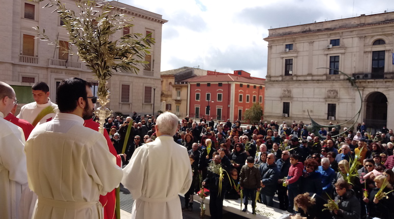 Il vescovo Cuttita celebra la domenica delle Palme in centro storico
