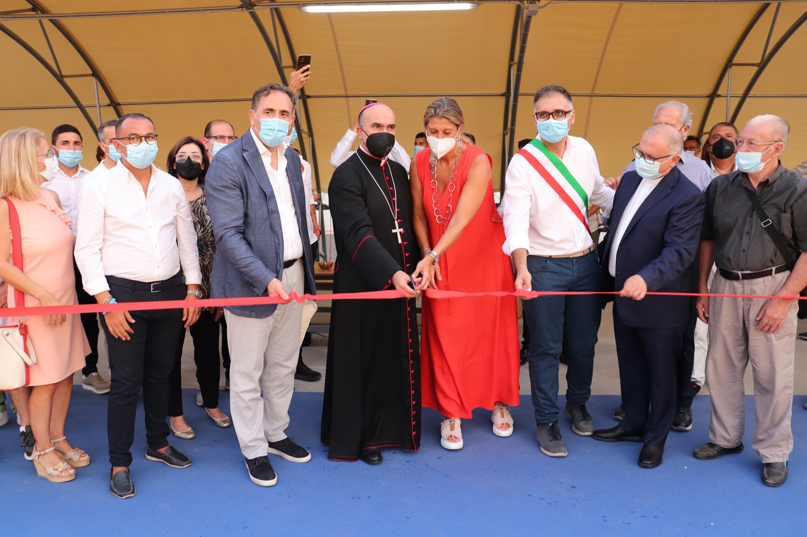Con una sobria cerimonia, condizionata dalle ristrettezze anti covid, è stato inaugurato sabato 21 agosto scorso il Centro Sportivo Olympia Basket Comiso – Oasi Maria SS. Annunziata. A tagliare il nastro, dopo la benedizione, è stato il vescovo di Ragusa Mons. Giuseppe La Placa, insieme al presidente della FIP Sicilia Maria Cristina Correnti, al presidente dell’Olympia Basket Comiso Roberto Biscotto, all’assessore allo Sport Dante Di Trapani e al Parroco della Chiesa Maria SS. Annunziata Padre Alessi.