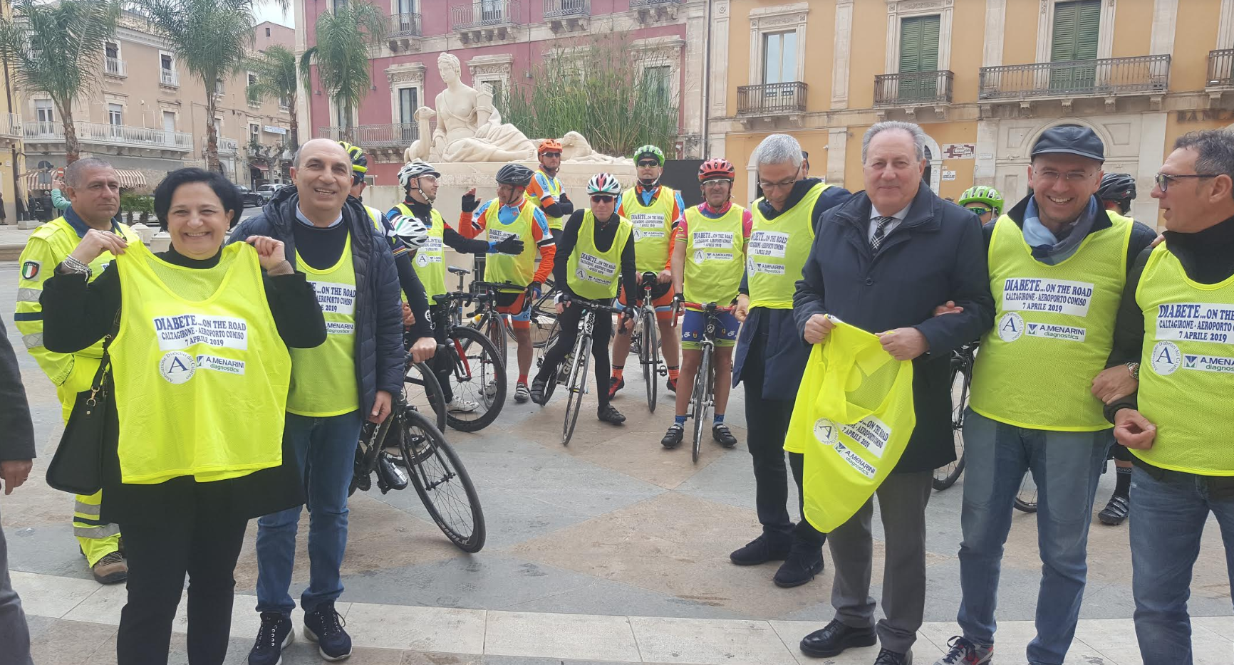 In bici da Caltagirone all’aeroporto di Comiso con tappa a Mazzarrone e in piazza Fonte Diana per sensibilizzare cittadini e pazienti alla lotta contro il diabete. L’associazione diabertici del Calatino presieduta dal medico Biagio Nativo ha promosso una passeggiata in bici con un doppio obiettivo: da un lato sensibilizzare al tema del diabete e accrescere la prevenzione di questa malattia e dall’altro lato tenere acceso le luci sull’aeroporto di Comiso, infrastruttura necessaria anche per lo sviluppo del territorio del calatino. Ad accogliere i ciclisti amatoriali a Comiso è stato il Commissario straordinario del Libero Consorzio Comunale di Ragusa Salvatore Piazza, originario del Calatino, che ha favorito oggi quest’iniziativa, il sindaco di Comiso Maria Rita Schembari e il presidente di Soaco Silvio Meli. “Diabete …on the road” è stato il claim dell’evento sportivo che ha portato una carovana di ciclisti amatoriali da Caltagirone a Comiso con l’obiettivo di sensibilizzare alla prevenzione del diabete.