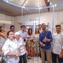 Alla fine dell’interminabile inaugurazione, a notte inoltrata, è salito sulla giostra tutto il team di Don Tabaré, brindando con i titolari, Antonio Sarnari e William Raimondo, e con il partner del concept Giovanni Galesi. Insieme a Stefania Sallemi, che ha selezionato e strutturato il team, sono saliti Emanuela, Angela, Giuseppe e Mohammed che formano la brigata di cucina, e poi Giuliano, di recente trasferitosi in Sicilia, che è a capo del gruppo di accoglienza, Federica, Francesca e Miriam. Grandi sorrisi e tanta soddisfazione, che si leggevano sui volti di questi giovanissimi, tradiscono una certa magia nel gruppo e grande passione per il proprio lavoro.