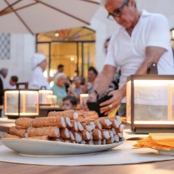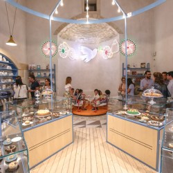 Il menu ha poi svelato alcuni prodotti di punta della pasticceria che, oltre i dessert degli chef stellati, offre alcune cremolate di frutta di stagione, e alcuni dessert al cucchiaio composti da un castelletto di Gelo e Gelato, come il gelo di cannella abbinato al gelato di Zenzero. A tutto questo si aggiunge la grandissima esposizione di torte di Antonio Pitino, di Dolce e Salato, che rappresenta il grosso della cosiddetta ‘collezione di dolci’ pronti da portar via ma anche da consumare al tavolo.