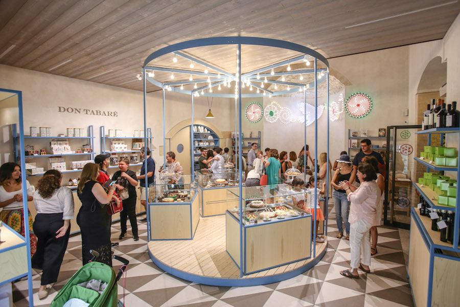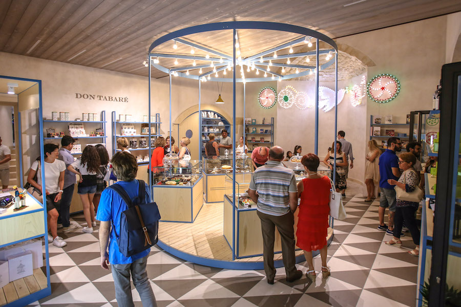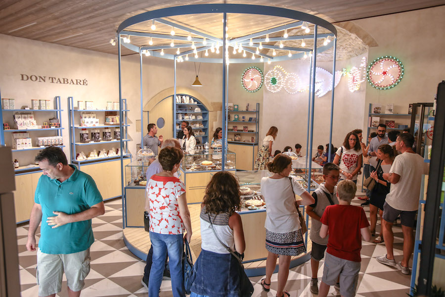 Don Tabaré in questa veste, agli occhi degli esperti del settore, ha mostrato così il proprio ‘show side’. L’area ad anfiteatro per i bambini, le sedute per gli spettatori dell’evento, le isole del buon gusto. Dunque un contenitore progettato, anche architettonicamente, per grandi eventi e performance di personalità del mondo della pasticceria e della panificazione tra quelle geniali e più aperte al confronto, promettono i proprietari.