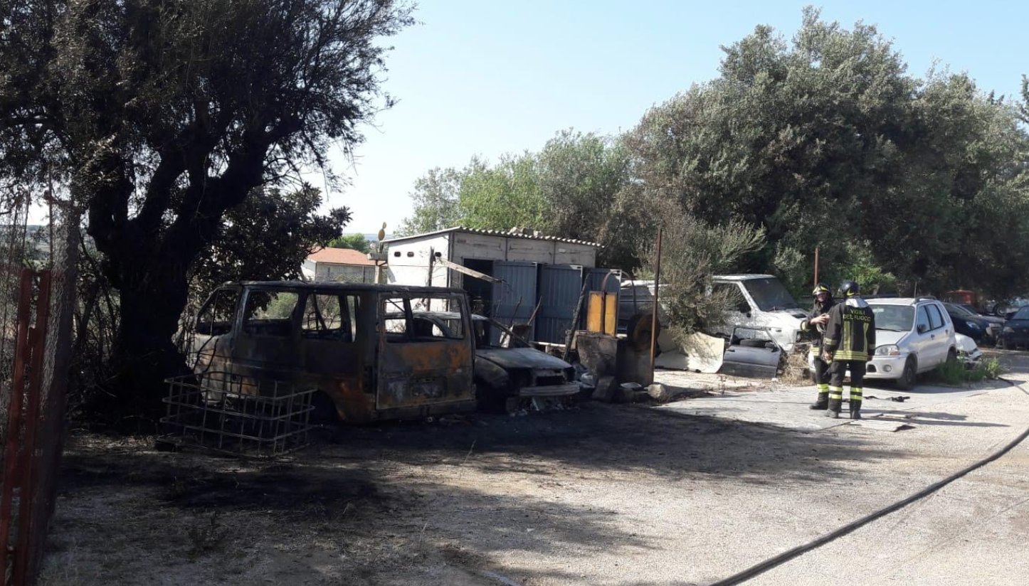 Incendio a Scicli, a fuoco deposito autodemolizioni
