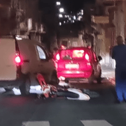 La moto è rimasta a terra dopo l’impatto, mentre l’auto ha riportato danni nella parte anteriore, con il parabrezza visibilmente compromesso. Le cause dell’incidente non sono ancora chiare e al momento non sono disponibili informazioni ufficiali sulla dinamica.