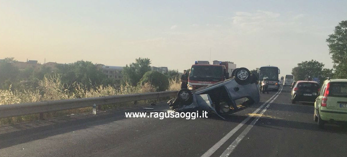 Incidente stradale alle porte di Ragusa. Auto si capovolge. Rallentamenti traffico