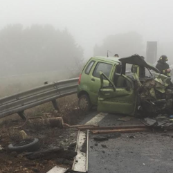 A seguito dell’impatto l’autoarticolato perdeva il carico consistente in una lastra di marmo, la quale cadendo schiacciava una Opel Agila e feriva il conducente in maniera grave.