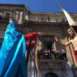 Torna la festa delle feste. E’ l’evento religioso più atteso nella città di Modica, capitale dell’antica Contea. Sta per rivivere un rito speciale ricco di emozioni, suggestioni, fede, devozione e intensità spirituale. Gli aggettivi non bastano mai per definire l’appuntamento di domenica 1 aprile quando, in occasione della Santa Pasqua, sarà riproposta la tradizione de “A Maronna vasa vasa” che, dopo avere cercato invano il proprio figlio, lo trova a mezzodì in punto, nel cuore del centro storico, di fronte al palazzo municipale, animando il suggestivo incontro con il Cristo risorto e il successivo bacio. E’ proprio in quel momento che i fedeli applaudono la liberazione di una madre che ritrova il figlio che credeva morto. Una madre che, invece, può gioire della resurrezione. Un rito che si ripete, di anno in anno, addirittura da secoli, uguale a se stesso, per marcare l’identità di un popolo, quello modicano, da sempre molto legato al culto della Vergine. Un bacio che viene poi ripetuto dinanzi alla chiesa madre di San Pietro e, per la terza volta, all’ingresso di Santa Maria di Betlem, la chiesa che ospita i due simulacri. Ma prima di essere posati, è accaduto negli ultimi anni, il bacio tra i due simulacri anche a metà della navata centrale e sotto l’altare maggiore. In più, anche quest’anno, ci sarà la solenne processione serale del Cristo Risorto e della Madonna “Vasa vasa” con il bacio, l’ennesimo della giornata, in piazza Municipio, poi sul sagrato del Duomo di San Giorgio e quindi in piazza Matteotti prima del rientro in chiesa. Il parroco, don Antonio Maria Forgione, e il consiglio pastorale della parrocchia Santa Maria di Betlem e Santa Margherita hanno, intanto, predisposto gli eventi religiosi che caratterizzeranno la Settimana santa 2018 che prenderà il via domani, 25 marzo, con la tradizionale Domenica delle palme. In particolare, alle 10,30, nella chiesa di Santa Margherita, ci sarà la benedizione delle palme e subito dopo, in processione, ci si muoverà per raggiungere la chiesa di Santa Maria di Betlem dove, alle 11, sarà celebrata la solenne eucarestia. Da segnalare, inoltre, alle 19, in occasione della santa messa serale, il suggestivo rito della “Deposizione del Cristo dalla Croce” che sarà guidato dal predicatore. Rito che sarà caratterizzato dalla processione interna e dalla venerazione del Cristo morto nella monumentale cappella Palatina. Il consiglio pastorale parrocchiale ha inteso rivolgere un vivo ringraziamento all’amministrazione comunale per avere patrocinato i festeggiamenti e a quanti, in vario modo, hanno contribuito. A curare la comunicazione esterna, quest’anno, è invece Confcommercio provinciale Ragusa consapevole dell’importanza che iniziative come quella de “A Maronna vasa vasa” possono avere, in termini di ricadute, per l’incremento e la ricettività turistica dell’intero territorio ibleo. “Appuntamenti simili – sottolineano il presidente provinciale Confcommercio, Gianluca Manenti, e il presidente cittadino della sezione Ascom, Giorgio Moncada – garantiscono ritorni importanti, al di là dell’aspetto preminentemente spirituale, sul piano dell’immagine. Ed è naturale che debba essere l’intero territorio ad intestarsi la promozione di un evento che merita grande attenzione e che bisogna puntare a rilanciare sempre di più”.
