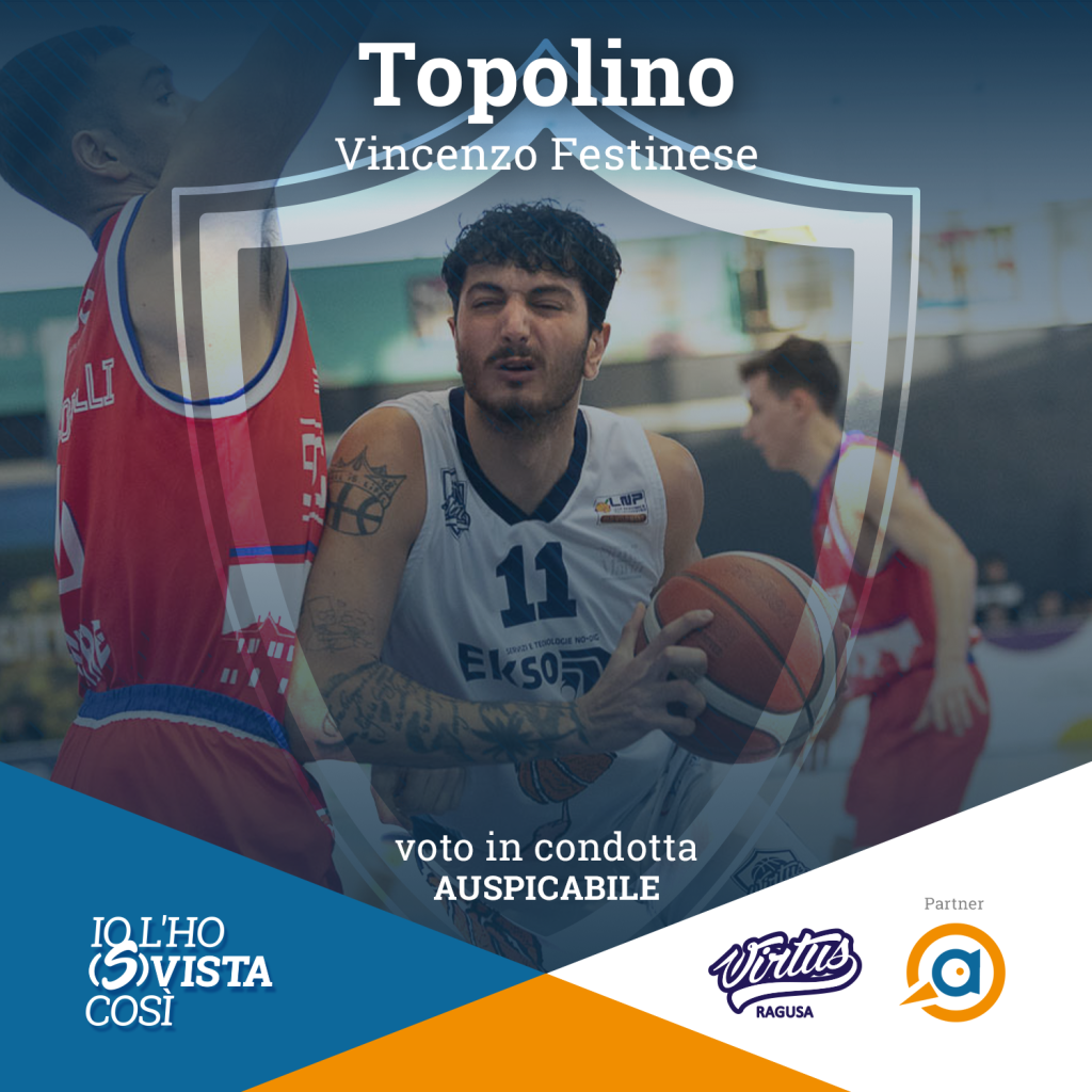Topolino sbuca fuori dalla panchina e al primo tocco di palla fa centro. Per un certo periodo accumula più chilometri nel tratto panchina campo e ritorno, che nell’altro più interessante di campo_campo, poi si stabilizza! In difesa viene investito dai “Tir” avversari che se lo portano fino sotto canestro, poi decide di togliere la seggiola e appoggio al nemico, porta a casa un passi velenoso in un momento chiave. Topolino è energia e in campo si sente, in certi momenti dà l’impressione di essere ospite, ma si tratta di accumulare minuti di gioco.