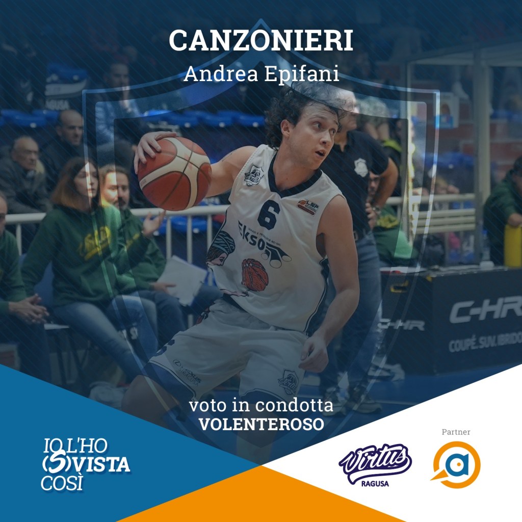 Terzo quarto di tutto di meno, un tempo a lasciare la palla agli altri. Epifani-Canzonieri volenteroso, molto volenteroso, ma non basta. Prende dei tiri giusti ma il canestro lo beffa, mentre in difesa sfarfalla come un baco in primavera. Bravo nel palleggio, ne abusa per infilarsi in situazioni pericolose anche fisicamente. Da fiato agli esterni, toglie G7B dalla regia, però oggi il capitano-reggente non è in confidenza con il canestro e il punteggio la dice lunga.