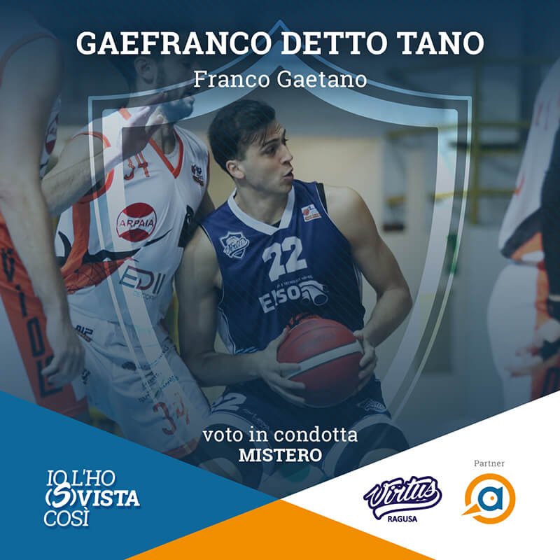 GaeFranco detto Tano entra in quintetto come unico lungo e subito Morgillo gli gioca contro, i compagni non aiutano? Pochi palloni tra le sue mani iniziando la partita, mentre i lunghi avrebbero bisogno di essere coinvolti. Così sbaglia dal mezzo angolo come per dire .” devo carburare”. Escluso in attacco, riviene uccellato da Morgillo in difesa, a cui segue un fallo in attacco. Nei minuti iniziali del terzo quarto, passa più tempo in posizione orrizzontale che verticale, però carica di falli i Patavini, deve ritornare in panchina…mistero! Una partita a corrente alternata, come il suo coinvolgimento in attacco.