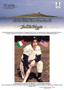 L’Associazione BCsicilia Isola delle Femmine ricorda Joe Di Maggio il più grande giocatore del Baseball di tutti i tempi. La mostra con il patrocinio gratuito del Comune si terrà in Via Romeo 1 a Isola delle Femmine, nei giorni dal 15 al 18 Giugno, dalle 10,00 alle 13,00 e dalle 17,00 alle 22,00; dal 28 Giugno al 7 luglio 2019 dalle 18,00 alle 22,00.