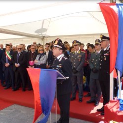 Dopo gli onori ai caduti, la consegna della Bandiera Nazionale al Comandante della Stazione, Mar. Ord. Angelo Marco Antonio Valenzisi, da parte del Sindaco Federico Piccitto e, a seguire, lo scoprimento della targa commemorativa con la motivazione della Medaglia d’Oro al Valor Civile, all’Appuntato Giorgio Scifo.