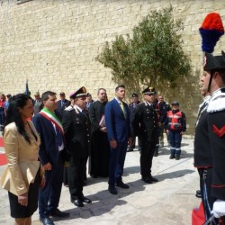 La massima Autorità militare, Gen. C.A. Luigi Robusto, Comandante Interregionale Carabinieri “Culqualber”, accompagnato dal Comandante della Legione Carabinieri Sicilia, Generale di Brigata Riccardo Galletta, ha passato in rassegna lo schieramento che composto da: Fanfara del 12° Reggimento Carabinieri Sicilia, diretta dal maestro Mar. Magg. Paolo SENA, un Reparto d’Onore, una rappresentanza di militari dell’Arma di Ragusa, una rappresentanza dell’Associazione Nazionale Carabinieri e delle altre FF.di PP., il Gonfalone del Comune di Ragusa.