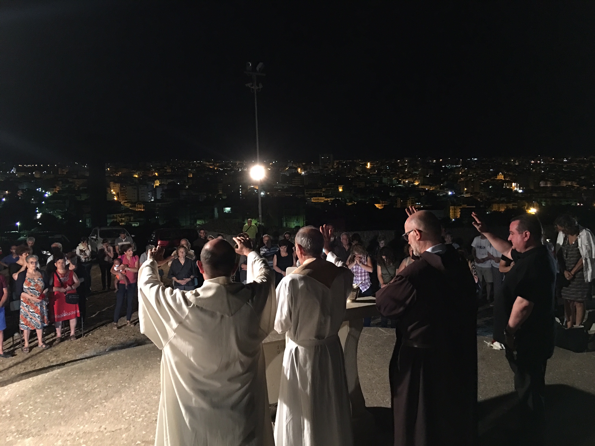 A benedire la città, dinanzi a numerosi fedeli, il priore dei Carmelitani scalzi di Ragusa, padre Renato Dall’Acqua, don Pippo Ramondazzo e don Gino Ravalli. I quattro sacerdoti, prima, avevano animato la processione dal piazzale Guastella, nei pressi dell’ex foro boario, sino a raggiungere, dopo la declamazione delle sette spade, vale a dire le soste di preghiera che caratterizzano questo antico rito della Via Matris, lo speciale spazio in cui è collocata la Croce da cui, tra l’altro, è possibile ammirare un panorama superbo della città di Ragusa.
