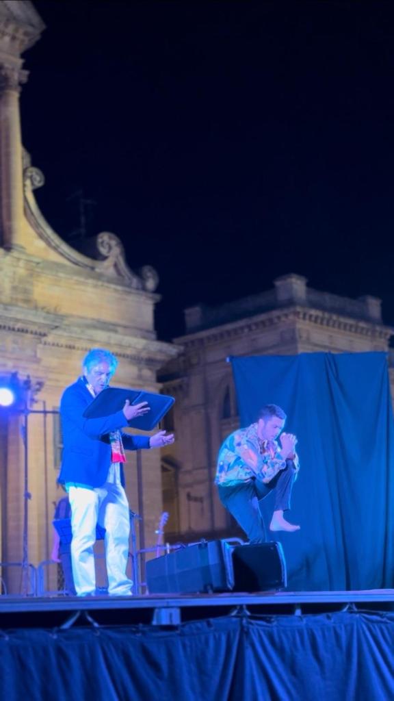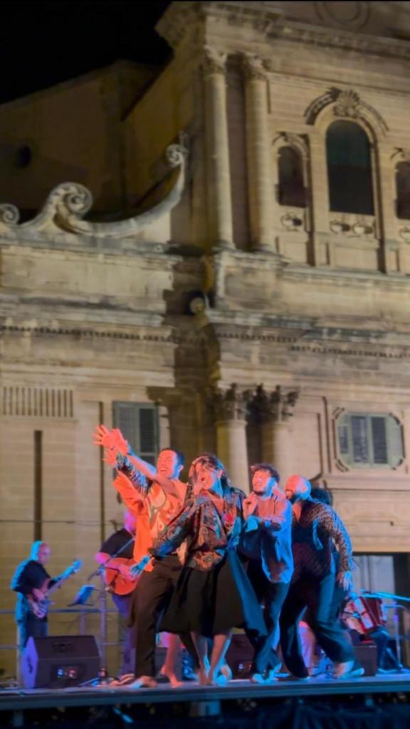 Lo spettacolo “Mistera” ha segnato il penultimo appuntamento dell’11ª edizione della rassegna diretta da Cetty Schembari, promossa dall’associazione Maria Taglioni con il sostegno del Comune di Ragusa. In scena una creazione a più voci: i Talèh, con la loro musica intensa e viscerale; il poeta Pippo Di Noto, voce narrante e ispirazione profonda; e i danzatori della compagnia Create Danza, con coreografie firmate da Filippo Stabile, che hanno dato corpo e ritmo a ogni emozione evocata. Il cuore pulsante dello spettacolo è stato proprio questo dialogo tra linguaggi: i versi poetici di Di Noto, capaci di scavare nelle radici più profonde della cultura mediterranea, sono diventati parola viva nei testi dei Talèh e, al tempo stesso, guida per i movimenti scenici.