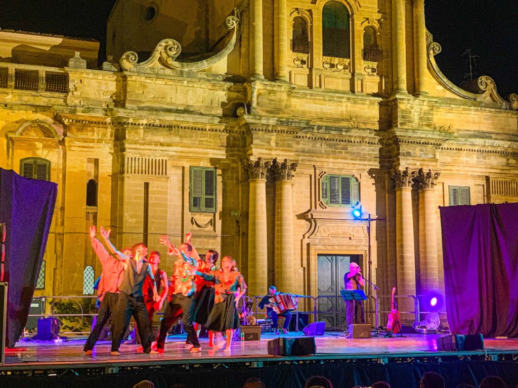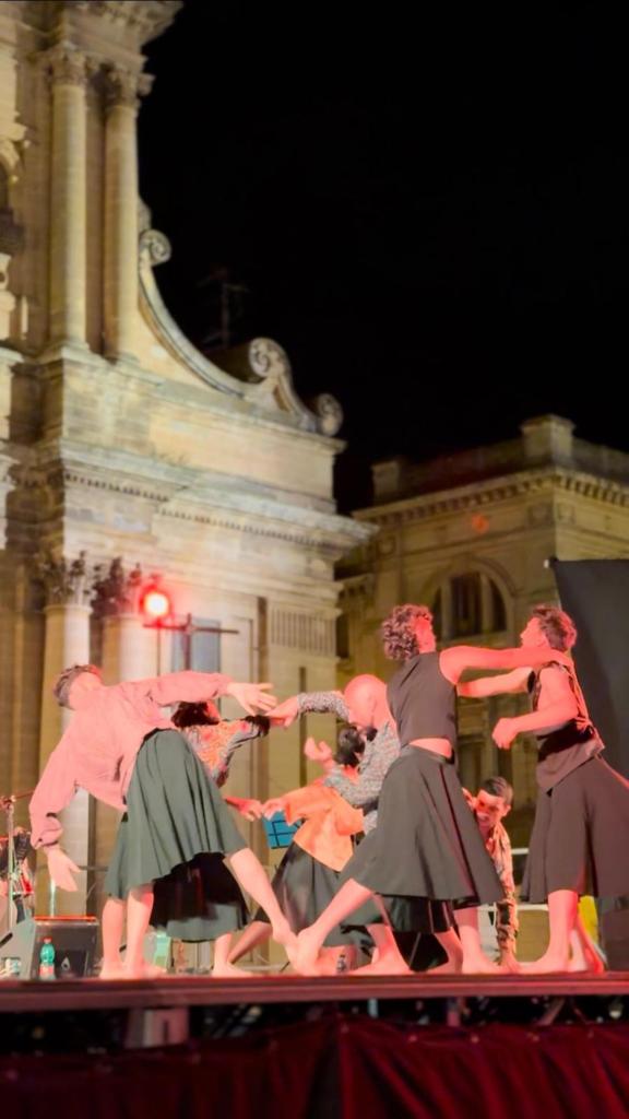 Ogni brano è stato tradotto in danza con gesti semplici ma simbolicamente forti, carichi di significati legati al sacro e alla memoria. Il pubblico ha accolto con grande partecipazione anche il ritorno live dei Talèh, gruppo che da anni lavora per restituire dignità e modernità al patrimonio sonoro siciliano. Le loro melodie, tra suggestioni arcaiche e vibrazioni contemporanee, hanno restituito un’atmosfera intensa e suggestiva, in perfetto dialogo con il tema dello spettacolo: il mistero, inteso come ciò che resta nascosto, sacro, rituale. I danzatori, provenienti dalla Calabria, hanno interpretato ogni brano con una forza espressiva che ha lasciato il segno, trasformando la piazza in uno spazio poetico condiviso. La direzione di FIlippo Stabile si è confermata come sempre capace di fondere la tecnica con l’emozione, in una coreografia che parla alla mente e al cuore. Il DanzArt Festival, presentato dalla giornalista Isabella Papiro, si prepara ora al suo ultimo atto.