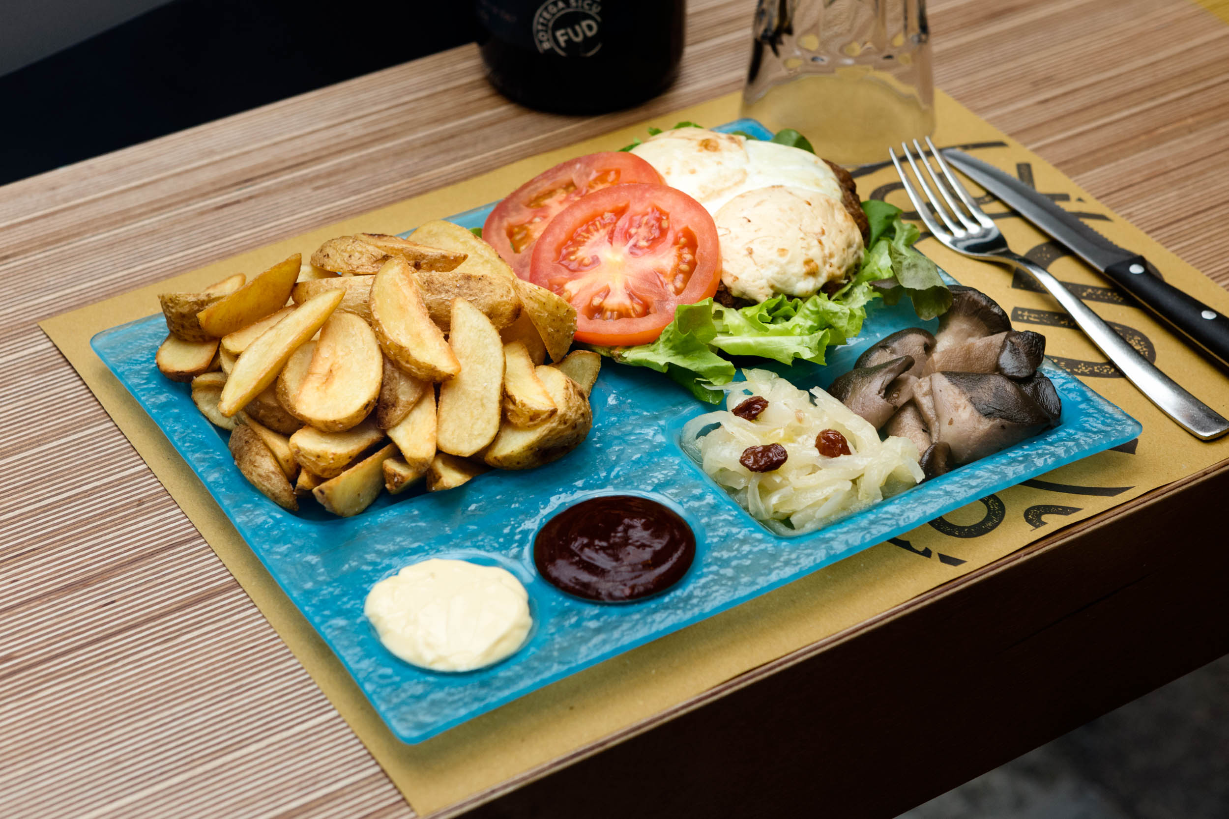 Il prezioso laboratorio del vetro di Thalass, a Modica, è divenuto ormai una vera e propria bottega artigianale del food design e un punto di riferimento per il panorama gastronomico nazionale. E in questo caso la progettazione per il nuovo locale di Andrea Graziano ha portato alla nascita di una vera e propria linea esclusiva, pensata per con un duplice scopo: da un lato quello funzionale, che attraverso una serie di ‘cassetti’ ritagliati nel vetro si presta anche alla presentazione ‘scomposta’ dei famosi panini siciliani, dall’altro quello puramente estetico, per dare valore ai singoli ingredienti e alla loro composizione e invitare chi si siede a tavola a comprenderne l’origine e a giocare con le possibili combinazioni.