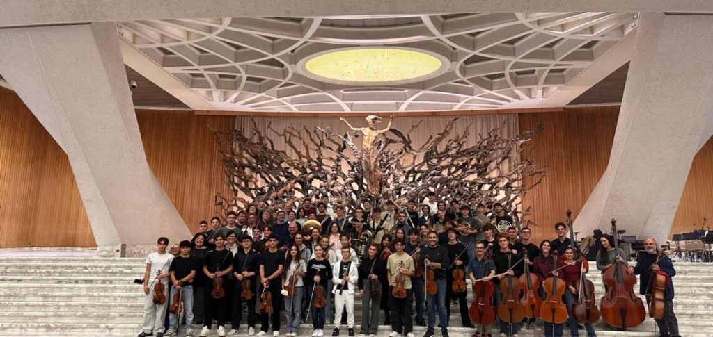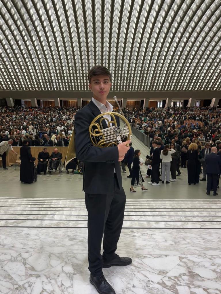 Il debutto ufficiale dell’Orchestra si è tenuto giovedì 30 ottobre a Roma, presso il prestigioso Auditorium della Conciliazione, in occasione del Giubileo del Mondo Educativo, alla presenza di Papa Leone XIV. Per l’occasione, l’ensemble era composto da 91 giovani musicisti, tra i quali l’alunno Giovanni Corallo, impegnato nel ruolo di cornista.