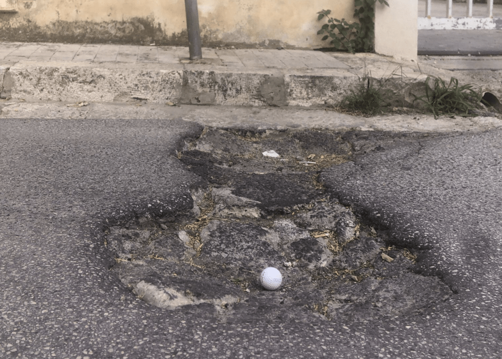La pallina va in…..buca. La singolare segnalazione per far riparare la strada a Ragusa