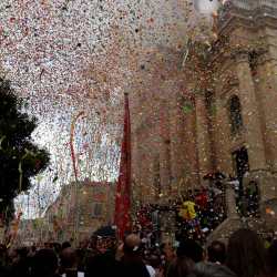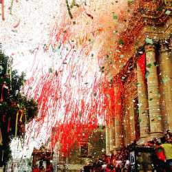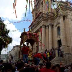 E’ stata una delle “Sciute” più belle degli ultimi anni. Con colori a tempesta. E un grido assordante che esce dal cuore e che sovrasta fedeli e devoti: “Iautu u Patronu”. Tutto ciò mentre un’onda umana si muove come se fosse animata da un’unica mano. Braccia tese allo spasimo. Per reggere il simulacro. In un istante le ripide scalinate della basilica sono affrontate come se nulla fosse. Momenti suggestivi, emozionanti, carichi di devozione e allo stesso tempo straordinari per chi è curioso di ammirare il folklore che deriva dalla storia. Roba da rimanere a bocca aperta. Tutto questo, e molto altro ancora, ha animato il tradizionale appuntamento di San Bartolomeo apostolo che, come ogni anno, si è consumato quest’oggi, 24 agosto, a Giarratana. Qualche minuto dopo mezzogiorno, una folla di persone, in numero ancora più consistente rispetto allo scorso anno, ha applaudito l’evento più atteso. Il simulacro del Patrono, spinto da una selva di mani, è venuto giù, è proprio il caso di dirlo, dopo l’uscita dalla chiesa di San Bartolomeo con un fragore di mortaretti e un diluvio di “nzaireddi”, le caratteristiche strisce in carta di vari colori.