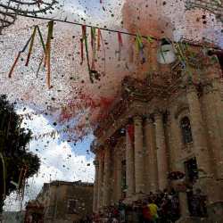 Poi, più volte, lo stesso simulacro ha reso onore al tempio che lo ospita tutto l’anno con l’andatura caratteristica dell’avanti e indietro: il tutto prima di dare il via alla processione. Per qualche minuto tutta Giarratana si è fermata e si è concentrata dinanzi all’edificio di culto che ospita il Patrono. La “Sciuta” è la tradizione religiosa che meglio raffigura il carattere forte e determinato dei residenti della Perla degli Iblei. Ad anticipare il momento dell’uscita, il rullare dei tamburi Città di Giarratana. Poi, l’apoteosi. La tradizionale “Sciuta” è stata salutata da manifestazioni di giubilo. Quindi, la processione ha preso il via seguendo il tradizionale percorso cittadino caratterizzato, tra l’altro, dalla visita alla chiesa di Sant’Antonio Abate. Questa mattina la messa è stata presieduta dal parroco, il sacerdote Mariusz Starczewski alla presenza delle autorità civili e militare. Ma la giornata non è ancora finita. Alle 17, infatti, si terrà il giro del corpo bandistico “Vincenzo Bellini” lungo le vie cittadine e l’esecuzione di marce sinfoniche in piazza San Bartolomeo.