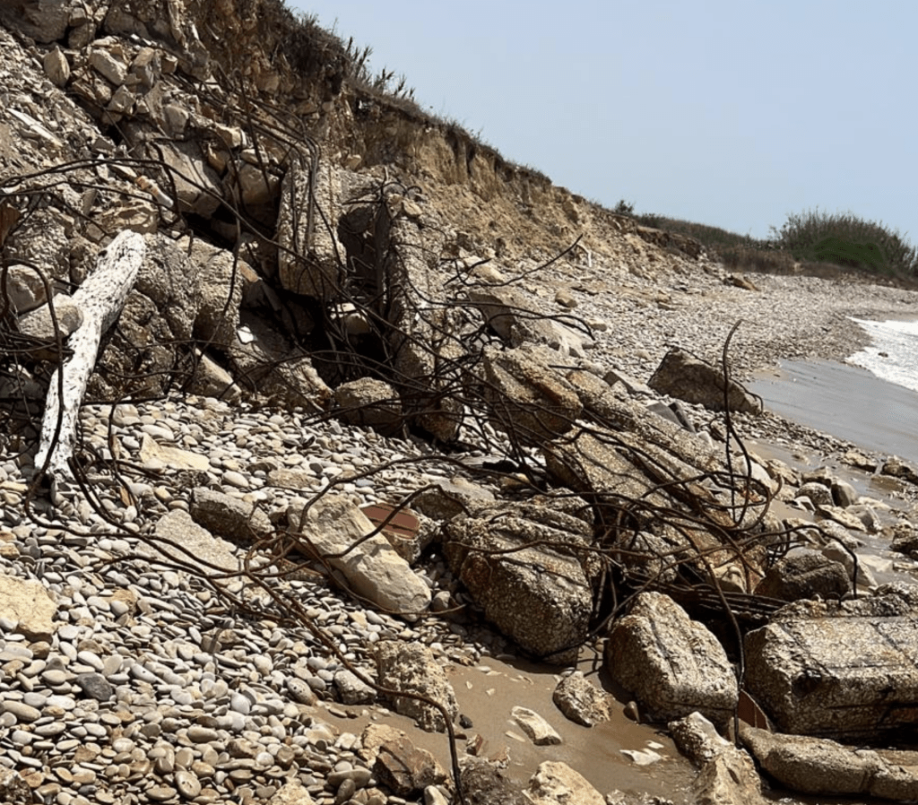 Se questa è una spiaggia! Siamo a Marina di Ragusa, a pochi metri dalla pre-riserva dell’Irminio, lungo la fascia costiera della frazione marinara, quella con la bandiera blu. Eppure si può facilmente assistere a questo scempio che va avanti ormai da anni, decenni, dopo un crollo probabilmente dovuto all’erosione a seguito delle mareggiate. E non si è intervenuti nemmeno qualche anno fa quando si è proceduto ai lavori di riqualificazione che hanno riguardato la parte finale del lungomare, con la realizzazione della piazzetta.
