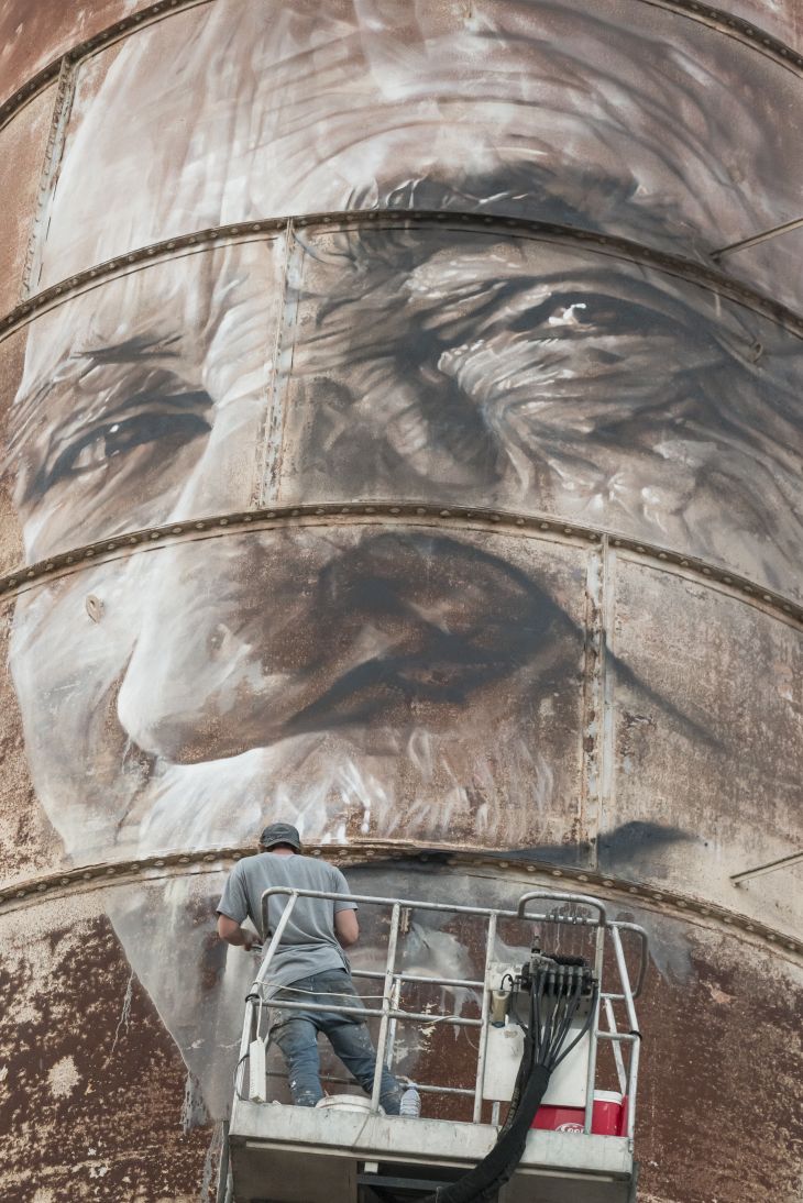 Nato nel solco di FestiWall, il Festival di arte pubblica che in cinque edizioni ha arricchito il capoluogo ibleo di oltre trenta lavori fra opere murali e installazioni, Bitume si concentra adesso su un nuovo obiettivo, spostando la riflessione dal tessuto urbano al contesto industriale, dal prospetto verticale dei palazzi al sottosuolo, dall’orizzonte del presente al tempo cristallizzato in uno spazio apparentemente immobile, dove il passato è reinterpretato dal segno dell’artista.