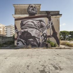 Prima ancora della scoperta del petrolio, prima dei pozzi sfruttati e poi esauriti, l’oro nero di Ragusa era la pietra pece, materiale fossile con grande versatilità di impiego, utilizzato nella costruzione dei palazzi nobiliari e delle chiese barocche, ma anche come idrocarburo e come asfalto destinato all’ammodernamento del manto stradale. Bitume vuole ripercorrere questo tragitto, rileggendo duecento anni di storia attraverso lo sguardo di alcuni fra gli esponenti più rappresentativi del panorama internazionale del muralismo contemporaneo, coinvolti in una ricerca che diventa studio scientifico, tra i capannoni e i container dismessi dell’industria.