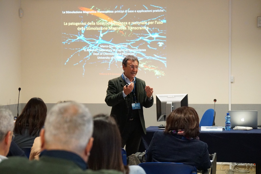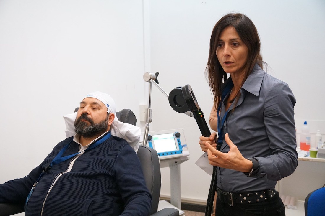 Ma come interviene la stimolazione magnetica trancranica? «È una terapia alternativa a quella farmacologica e avviene attraverso la stimolazione elettrofisiologica seguendo una logica di tipo anatomico – spiega Marco Diana, farmacologo e docente dell’Università di Sassari – Il campo elettromagnetico ha il vantaggio di attraversare la teca cranica in modo indolore ma nel tessuto celebrare si trasforma in un campo elettrico che depolarizza o iperpolarizza i neuroni modulando dunque l’attività delle strutture sottostanti come la corteccia celebrale. Stimolando specifiche aree, convogliamo su determinati sistemi neurotrasmettitori che riteniamo essere importanti nella patogenesi della malattia».