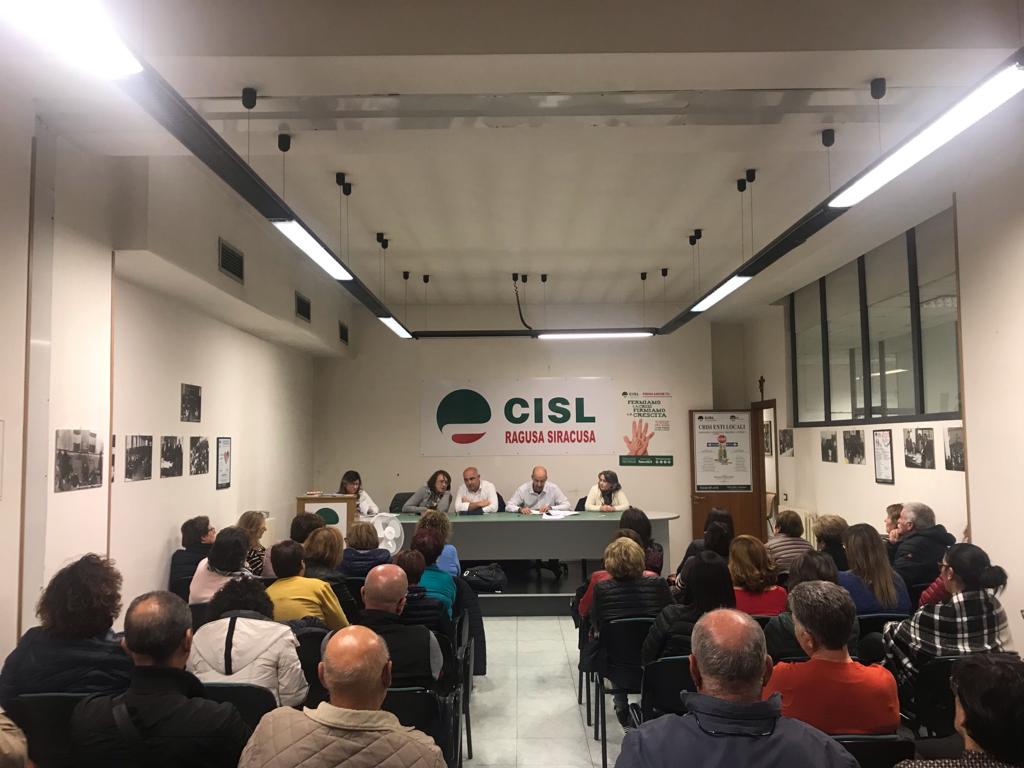 Gli “ex LSU – Appalti storici” chiedono garanzie in merito non solo all’internalizzazione e al ritorno come dipendenti della struttura scuola, ma anche alla tutela occupazionale e reddituale. Grande attesa, quindi, viene riposta nell’uscita del bando di concorso, in programma entro novembre. La volontà del Ministero competente pare sia quella di assumere quanto più personale possibile, fermo restando il limite di spesa presente nel Decreto stesso, che si potrebbe, eventualmente, aggirare con assunzioni part-time. “L’assemblea di ieri – spiegano Giovanni Migliore, Cisl Scuola, e Salvatore Scannavino, Fisascat Cisl, – è servita per dare visione ai nostri iscritti della bozza provvisoria del decreto, nonché per illustrare le modalità con le quali avverrà il loro passaggio e i requisiti necessari. Il 31 dicembre 2019 le convenzioni delle scuole con le cooperative non saranno rinnovate, ma dobbiamo aspettare di sapere quanti posti saranno assegnati alla provincia di Ragusa prima di valutare le prossime mosse. Saremo comunque attenti e vigili su tale processo, continuando inoltre ad informare e confrontarci con i lavoratori che in tutti questi anni hanno riposto la loro assoluta fiducia nella nostra organizzazione e l’incontro di ieri andava proprio in questa direzione”.
