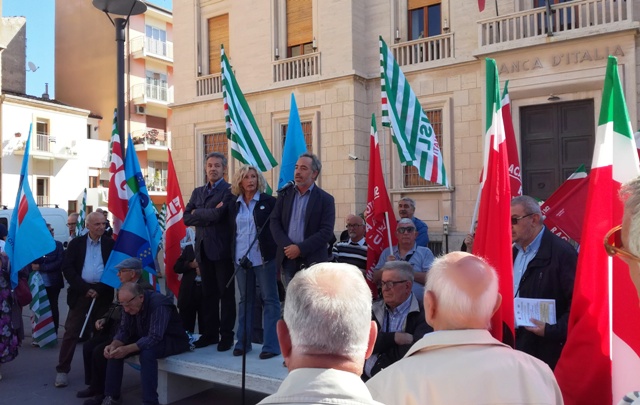 La manifestazione di Piazza Matteotti apertasi sotto lo slogan” Riformare le pensioni, dare lavoro ai giovani” ha visto la partecipazione di numerosi rappresentanti sindacali, delle diverse categorie, di Cgil, Cisl, Uil di Ragusa.