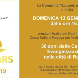 Domani, le Cellule di Evangelizzazione, celebrano i loro 30 anni di presenza nella Chiesa di Ragusa. La comunità “Eccomi manda me” ha esteso l’invito a partecipare al momento di preghiera che si terrà dalle 16.30 nel salone-teatro dei padri salesiani. La serata si concluderà, alle 19, con la celebrazione della santa messa. Sarà presente don Gian Matteo Botto, responsabile nazionale delle Cellule.